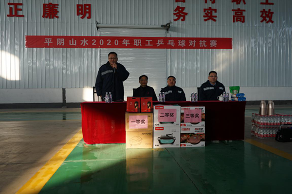 11月25日,由平陰山水水泥有限公司主辦的平陰山水2020年職工乒乓球對抗賽在平陰山水塑編公司辦公區(qū)舉行。來自平陰山水公司、骨料車間、三線項目部等部門及兗州中材建設有限公司平陰分公司,共計近30名參賽隊員參與了本次賽事。平陰山水水泥有限公司侯書記等出席了開幕式,并致詞宣布比賽開始。  平陰山水各部門與我們兗州中材平陰分公司歡聚一堂,以球會友,以球聯(lián)誼。增進了我們與業(yè)主的感情,我們公司派出了張好杰、王建民、候玉良3人參加了此次比賽。參加比賽的隊員們在球場上盡情的“揮拍、轉身、奔跑……”,每一個精彩的比賽瞬間,都贏得現(xiàn)場觀眾的陣陣掌聲和喝彩聲。   雖然這次比賽出征的3位家人沒有取得太好的成績,但是相信通過這次比賽我們進一步增強了與業(yè)主的友誼,也豐富了我們的業(yè)余活動,同時也進一步激發(fā)了我們的運動激情。 |