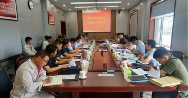 隨后,蘭陵分公司領導和臨沂中聯相關領導,陪同專家組一行到臨沂中聯水泥廠,召開驗收評審會。臨沂中聯水泥總經理王建軍向專家組詳細匯報了礦山安全管理、規范開采、環保治理以及節能降耗等方面的情況,并以專題片的方式,形象展示了綠色礦山建設成果。