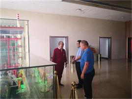 在礦山臨建生活區(qū)檢查過(guò)程中,郭總與業(yè)主山西國(guó)金電力有限公司董事長(zhǎng)、總經(jīng)理頡鈺進(jìn)行友好的暢談,隨后郭總受頡鈺董事長(zhǎng)邀請(qǐng)來(lái)到山西國(guó)金電力有限公司總部大樓,興致勃勃的參觀了正在使用世界首臺(tái)350MW超臨界循環(huán)流發(fā)電機(jī)組模型。