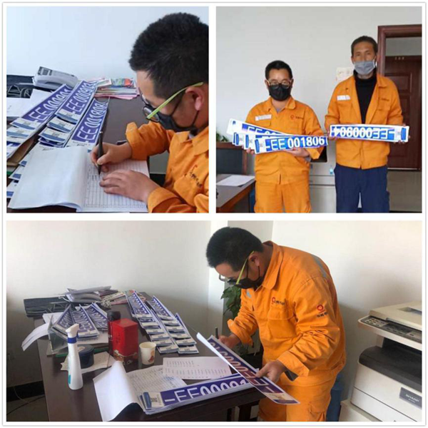 領取環保標識牌及其卡片后,分公司將申領的非道路移動機械環保標牌張貼于機械設備的左右兩側或機械尾端、操作手臂等明顯位置。 張貼完畢后要求各設備管理人員及操作人員必須注意保護好機械牌照及環保信息卡片,避免磕碰污損,以備檢查核驗。  今后,萬年分公司的非道路移動機械將像機動車一樣,擁有屬于自己的“身份證”。