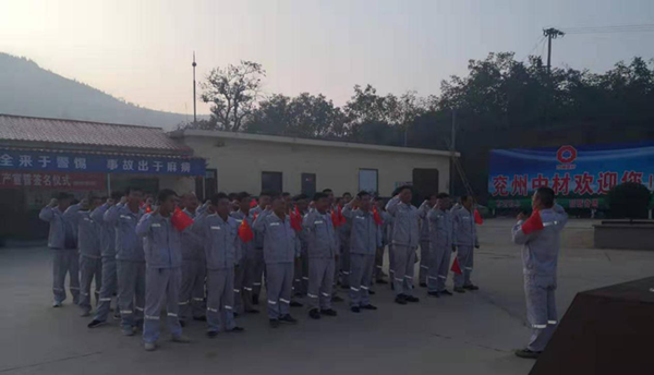 在這個(gè)秋高氣爽、瓜果飄香,到處洋溢著一片豐收景象的時(shí)節(jié),我們迎來(lái)了偉大祖國(guó)的70周年華誕。為慶祝祖國(guó)的生日,兗州中材蘭陵分公司在辦公生活區(qū),組織開(kāi)展了以“愛(ài)國(guó)敬業(yè),安全發(fā)展”為主題的升國(guó)旗、安全生產(chǎn)宣誓等一系列活動(dòng)。 “全體肅立,行注目禮,升國(guó)旗,奏唱國(guó)歌!”伴隨著嘹亮的國(guó)歌,五星紅旗冉冉升起,兗州中材蘭陵分公司全體人員,莊嚴(yán)肅靜,目光隨著紅旗升高。旗升至頂,全體人員注目禮畢,高呼“我愛(ài)你中國(guó),祖國(guó)萬(wàn)歲”。 祖國(guó)是大家,家庭是小家。每個(gè)員工的安全,決定著一個(gè)家庭的幸福團(tuán)圓,進(jìn)而牽動(dòng)著祖國(guó)的和諧發(fā)展。因此,始終要把安全放在首位。“我宣誓:時(shí)刻牢記安全生產(chǎn)方針,遵守安全生產(chǎn)法律法規(guī),服從公司安全管理規(guī)定,認(rèn)真履行安全生產(chǎn)責(zé)任,全面提高安全技能,讓家人放心,讓企業(yè)放心,做一名合格的員工!”錚錚誓言,從每名員工口中朗朗而出,飄蕩在礦山,回蕩在心田。