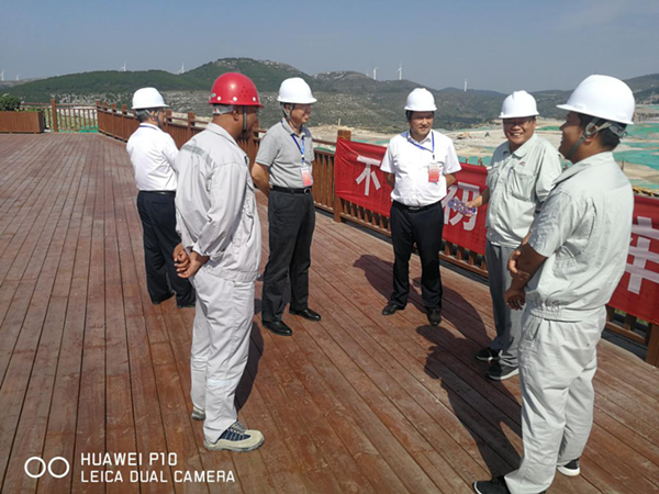 9月24日上午,中國建材股份副總裁、黨委委員蘇逵在公司總經理柯升、黨委書記王中秋的陪同下,對平陰分公司的“不忘初心、牢記使命”主題教育活動開展情況進行調研。平陰山水黨委書記侯福存、總經理助理江帥、分公司經理劉占中參加陪同。 蘇逵一行首先參觀了礦山,在260觀景平臺與業(yè)主領導進行了工作交流,平陰山水總經理助理江帥向蘇逵介紹了平陰山水基本情況,并對水泥廠后續(xù)規(guī)劃做了詳細介紹。分公司經理劉占中向蘇總詳細介紹了礦山工作開展情況,