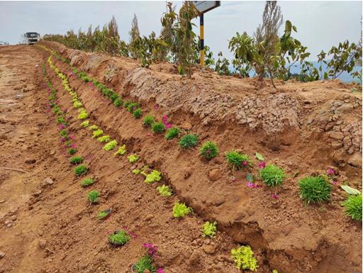 大家弓著身子,腳下踩著礦山新覆蓋的沃土,一層打底,一層加固施肥,植下綠色的希望。站在礦山之巔,望著礦山一片春色,環山而上綠色海洋生機盎然,春風拂過,蕩起微微波瀾,這樣的美色是我們礦山種植者的功勛。回首往日,灰禿禿的一片是我們記憶中對礦山的寫照,而現在綠油油的生機點燃的是建設綠色礦山的星星之火。