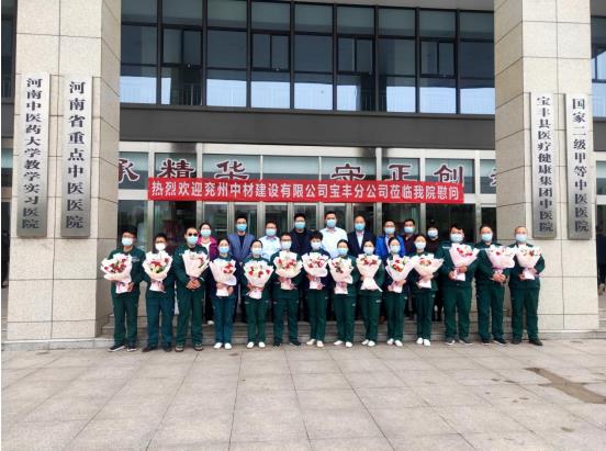 最后,寶豐分公司領導與中醫院領導、醫護人員合影留念,共同承載著醫企的執著、勇氣和擔當,攜手抗擊疫情,為人民健康保駕護航!