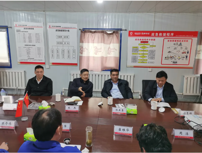 朱兵一行參觀了礦山施工現(xiàn)場,并與業(yè)主單位吉林天池鉬業(yè)領(lǐng)導(dǎo)親切交流。業(yè)主方對舒蘭分公司施工組織、裝備配置、人力配備表示高度認(rèn)可。