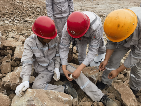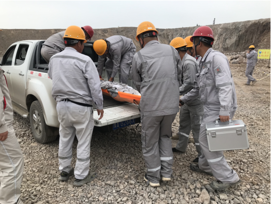 上午10時整,演練正式拉開序幕。假設(shè)情況是該露天礦山某區(qū)域發(fā)生了邊坡坍塌,造成一名作業(yè)人員腿部受傷被困。接到報告后,項(xiàng)目副經(jīng)理?xiàng)钣盍⒓磫討?yīng)急預(yù)案,迅速組織了由醫(yī)療救護(hù)組、應(yīng)急搶險組、警戒保衛(wèi)組、物資保障組等部門人員組成的應(yīng)急救援隊(duì)伍,攜帶救援裝備,迅速趕赴事故現(xiàn)場。同時,通訊保障組也迅速建立起臨時通訊網(wǎng)絡(luò),確保現(xiàn)場信息暢通無阻。