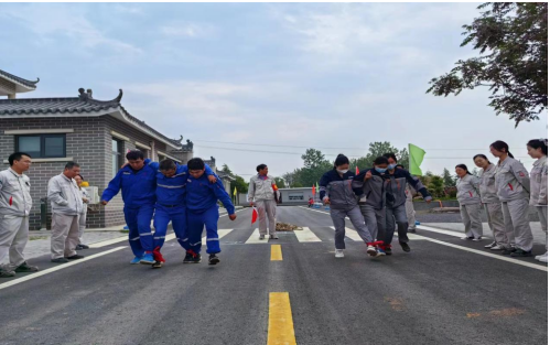 第二項(xiàng)比賽是考驗(yàn)參賽人員協(xié)調(diào)配合能力的三人三足,江雪野、王曉琦、吳憾代表兗州中材禹州第四分公司參賽,三人互相配合,50米的距離沒有發(fā)生失誤,完美體現(xiàn)了三人之間的默契。